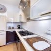 La cucina dell'appartamento, dotata di lavastoviglie, è disponibile per cucinare e conservare il cibo.