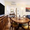 Ampio salone arredato con divani in pelle e mobili di prestigio ideale per il tuo relax con uno sguardo diretto dentro l'Arena di Verona con balcone panoramico e TV SKY Glass 65 pollici.
